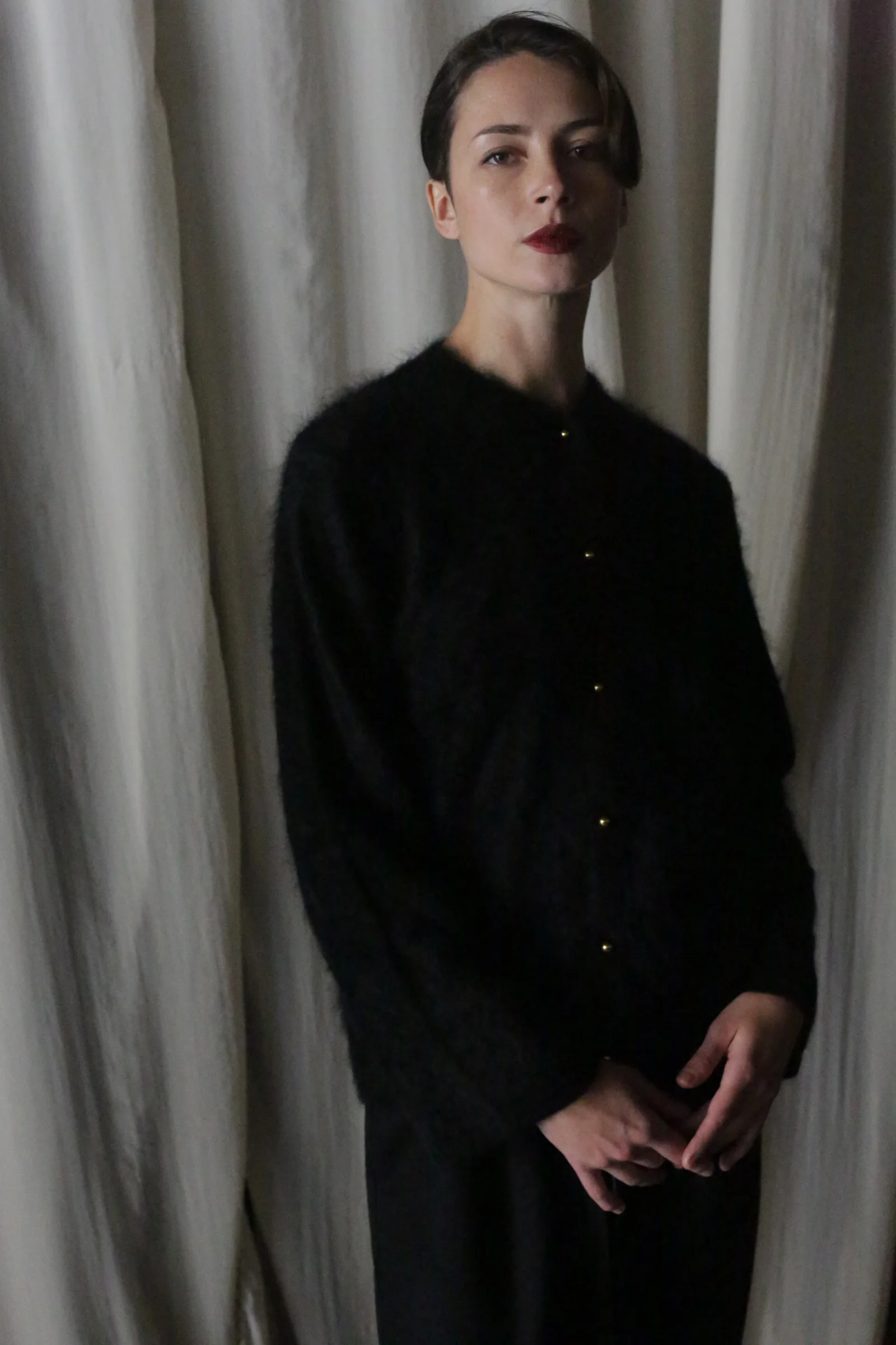 Experience the luxurious embrace of the Brushed Cashmere Cardigan, crafted from long, brushed cashmere staples that offer a sumptuous texture. This relaxed knit cardigan features straight sleeves, a line of gleaming brass buttons and a high neckline that softly frames the neck when buttoned up. Designed for a cozy yet elevated feel, its lightweight warmth and gentle drape make it an effortless layering piece for the cooler months.