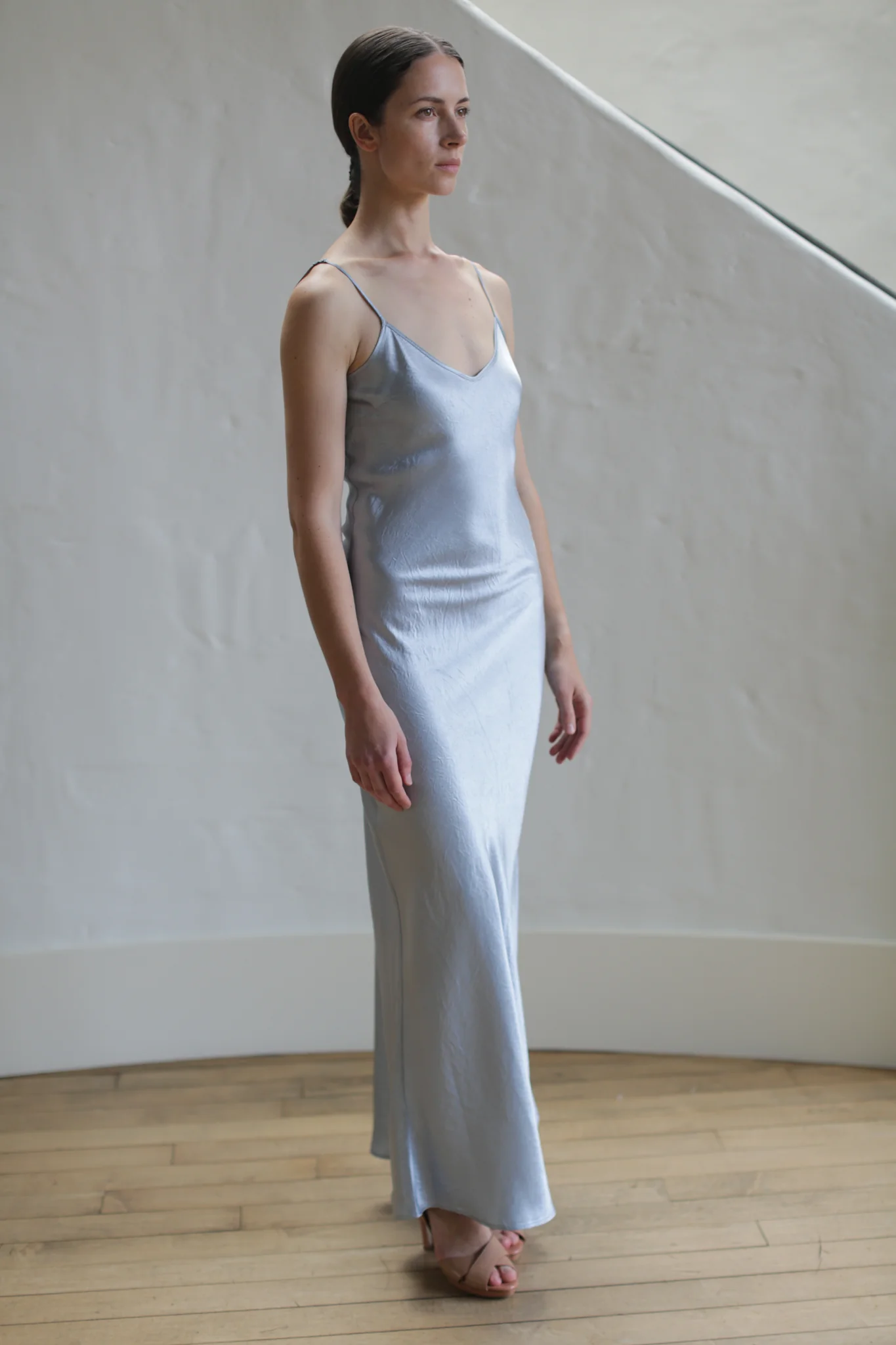 This sexy, sleek dress recalls the glamour and sheen of silver screen icons. Made from 100% plant derived material (and thus completely biodegradable), this elegant, utterly fetching dress will become a second skin, especially with its bias cut that hugs your curves. Striking on its own, it can be worn with a cashmere cardigan for a layer of warmth, or under a coat for stepping out on a cool night. In a sumptuous palette of Aluminum, Champagne, Mink, Peony, and Midnight. What lies ahead is up to you.