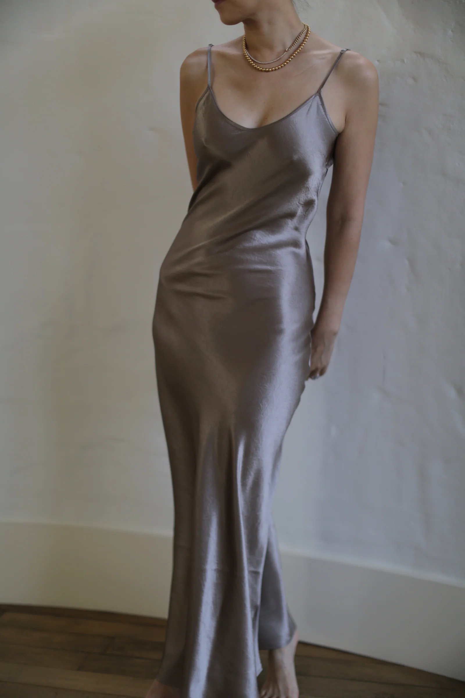 This sexy, sleek dress recalls the glamour and sheen of silver screen icons. Made from 100% plant derived material (and thus completely biodegradable), this elegant, utterly fetching dress will become a second skin, especially with its bias cut that hugs your curves. Striking on its own, it can be worn with a cashmere cardigan for a layer of warmth, or under a coat for stepping out on a cool night. In a sumptuous palette of Mink, Peony, and Midnight. What lies ahead is up to you.