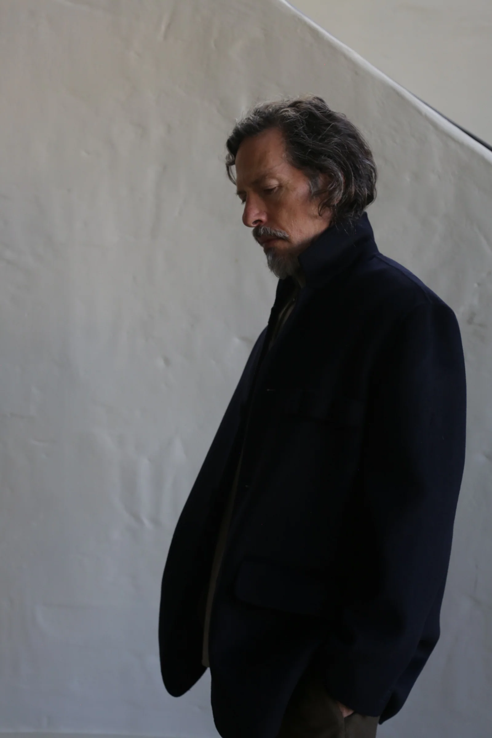 This innovative, yet timeless, jacket cuts a supremely elegant silhouette. Practical in design, it features sewn loops in lieu of a breast pocket for your glasses, pens, chisels. And in pure double face cashmere, it is a work of art in itself.