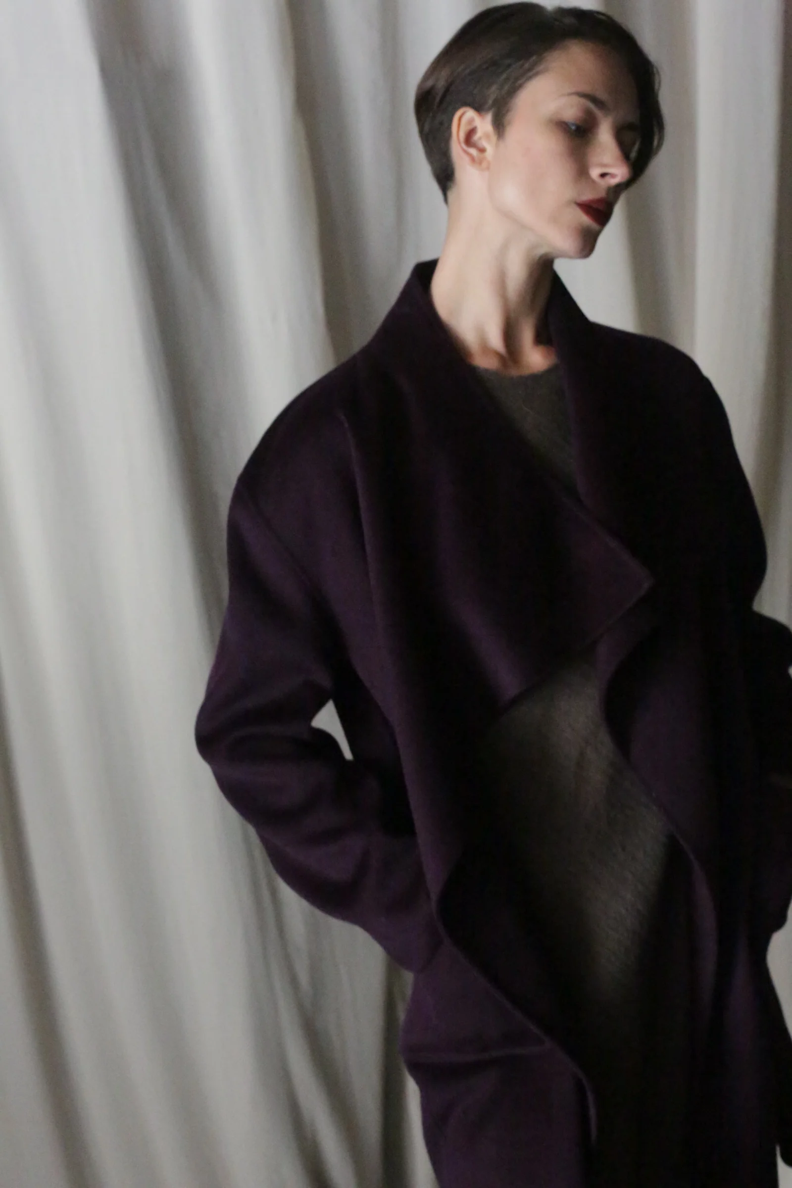 The Winston Long Double-Face returns in striking new colors: Saffron, Aubergine, and Wine, bringing fresh vibrancy to this enduring favorite. The draped collar and dropped shoulders give the coat a relaxed, fluid structure that invites versatile styling options, whether cinched with a belt or left open to showcase its effortless elegance. Crafted from the same opulent Lan Jaenicke double-faced cashmere.